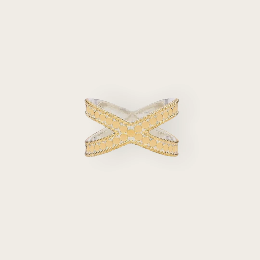 Every dot is individually placed by hand to form the base of our cross-band ring. Texture and shape combine to create a classic, timeless design that’s anything but basic.