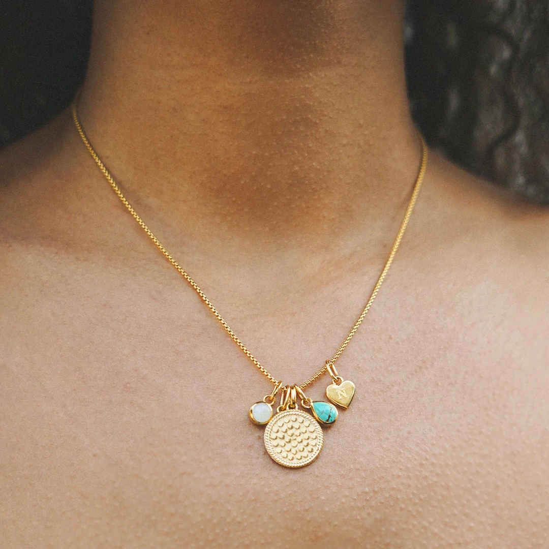 Mix, match, layer: create your story with our charm chain. This delicate chain is a classic cable chain, with a smaller end connection to allow you to easily slide charms on. Turquoise reverses to a smooth canvas that you can leave blank or personalize with an engraving of your choice.Â