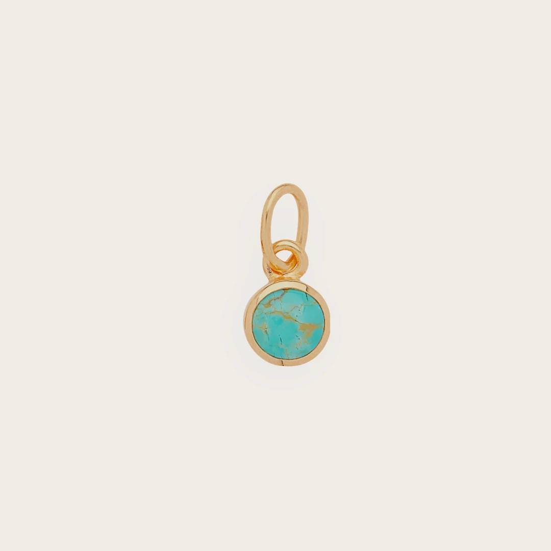 Charm symbolism: Turquoise is said to be the stone of protection and strength, while circles represent connection and the circle of life. This charm can hold meaning to those facing a difficult challenge or obstacle, those traveling or taking on new responsibility, or those giving birth to life or ideas, perhaps even grieving.
