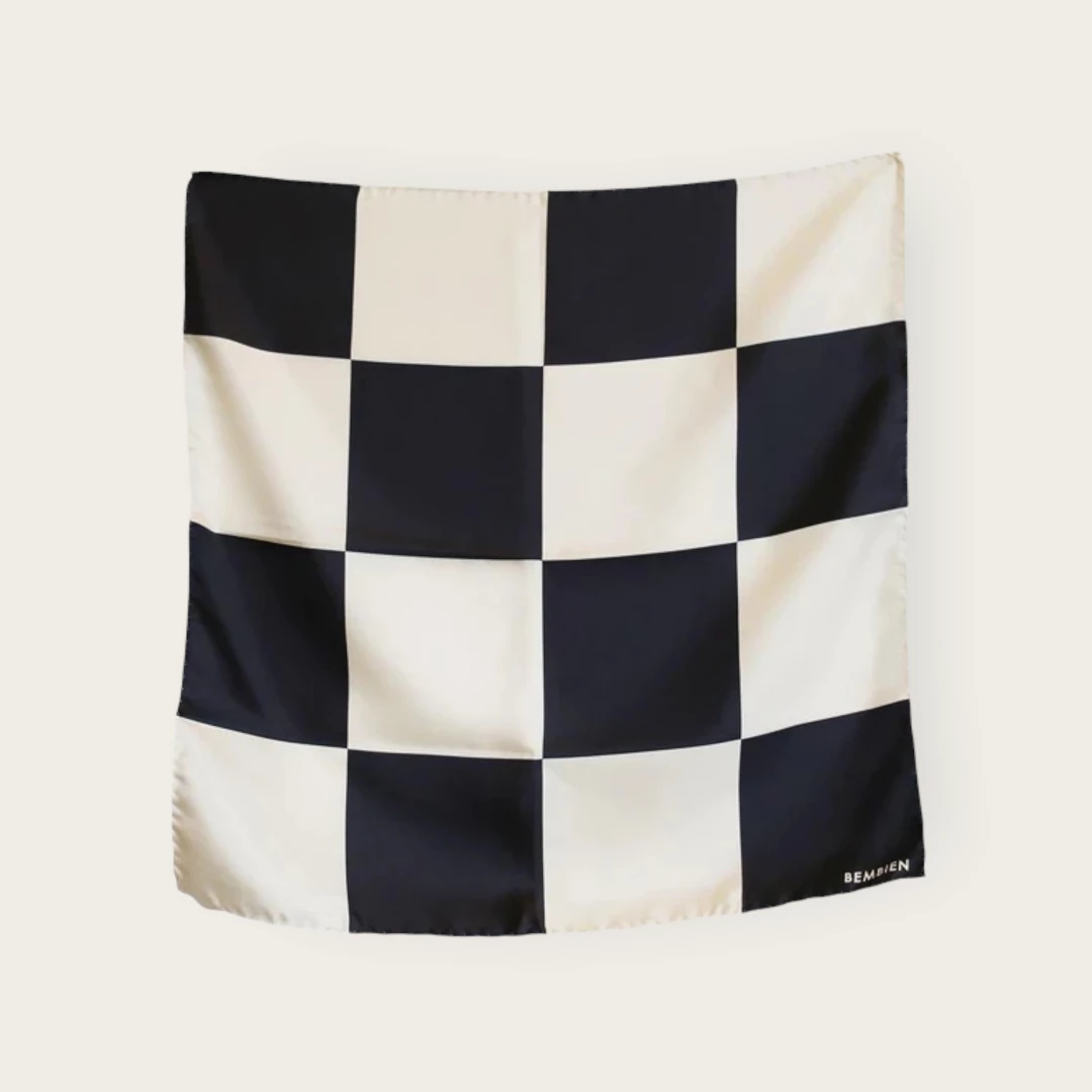 An Italian silk carré scarf in sixties tonal and mod prints.