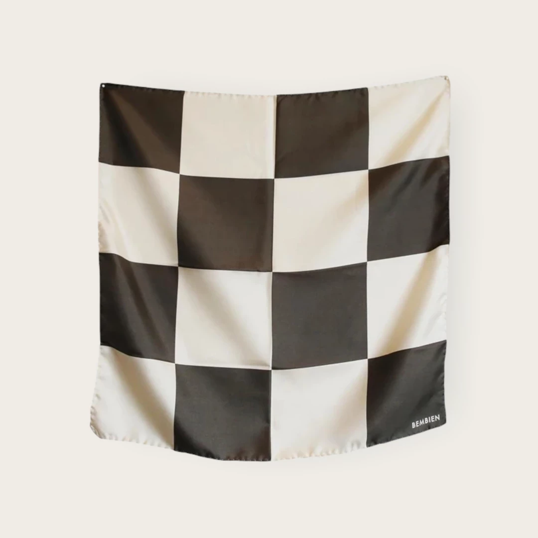 An Italian silk carré scarf in sixties tonal and mod prints.