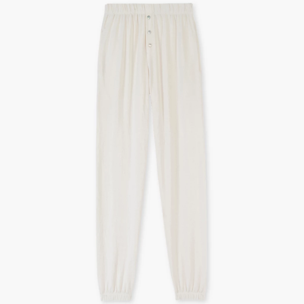 The softest brushed Hacci Henley sweatpant with mother of pearl buttons. Pair with Sweater Bra.