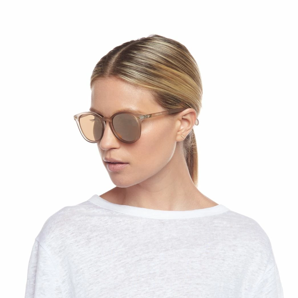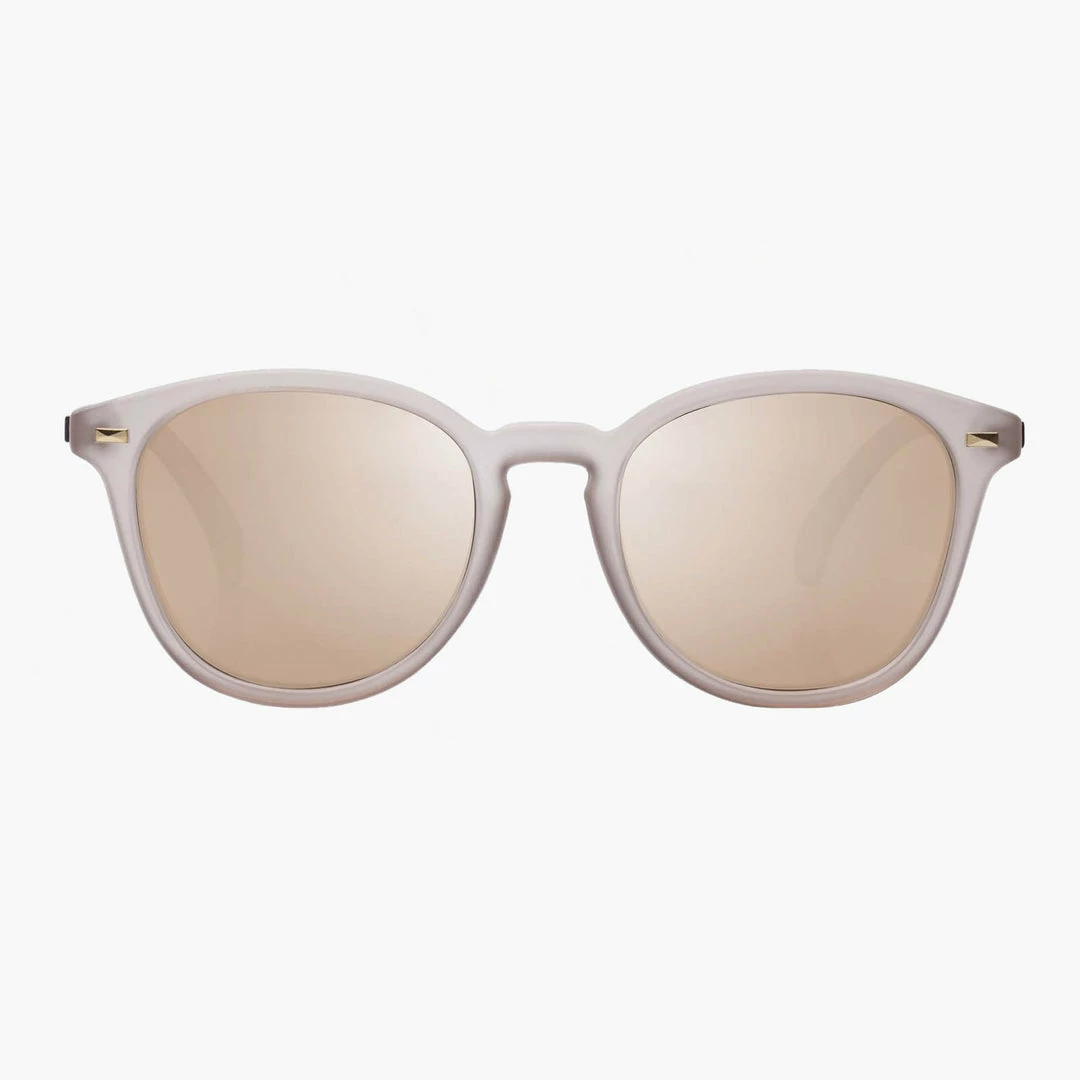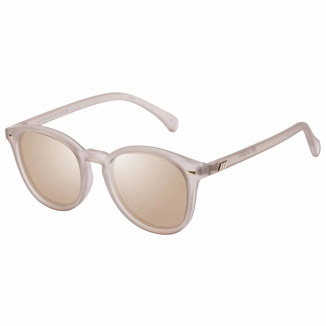 With vintage inspired details, this iconic Le Specs style in matte stone is the perfect all-round sunglass offering a timeless aesthetic. Featuring a keyhole nose bridge and refined angles, and mirror lens, this midsize style is finished with discreet metal rivet detailing and Le Specs flagstripe metal hardware.