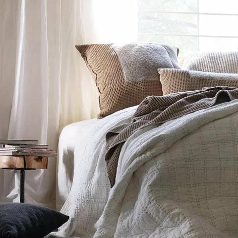 A key element of Neem Living Bedding is the textured layers that celebrate the simplicity and beauty of hand-woven textiles. Made with organic cotton, soft and quietly durable. In pleasing colors, subtle kantha embroidery and contemporary quilting patterns.