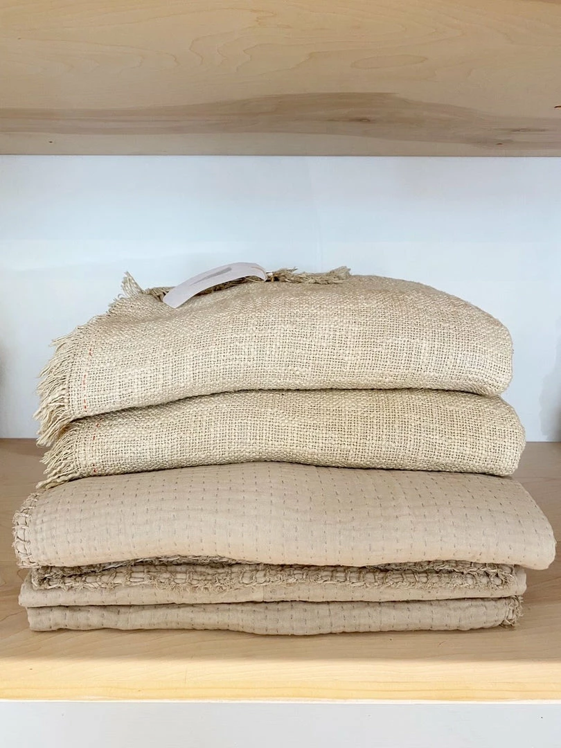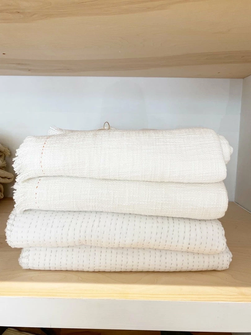 Specializing in handspun cotton, softened by craftsmen, these blankets are a lovely element to add layers to any room. The softest cotton layer with contrast stitching, hand embroidered with a finished edge. Perfect all year long.