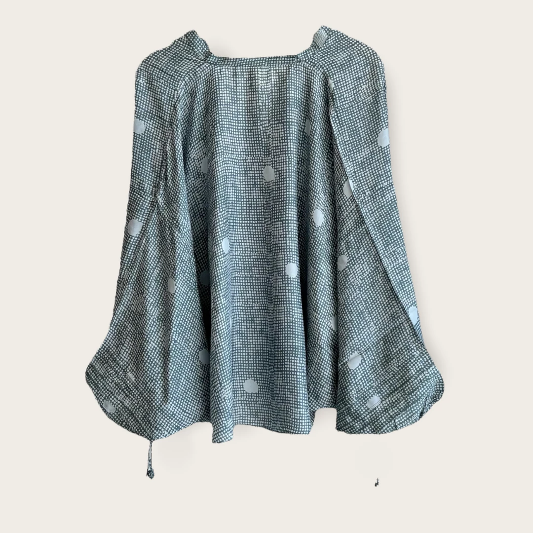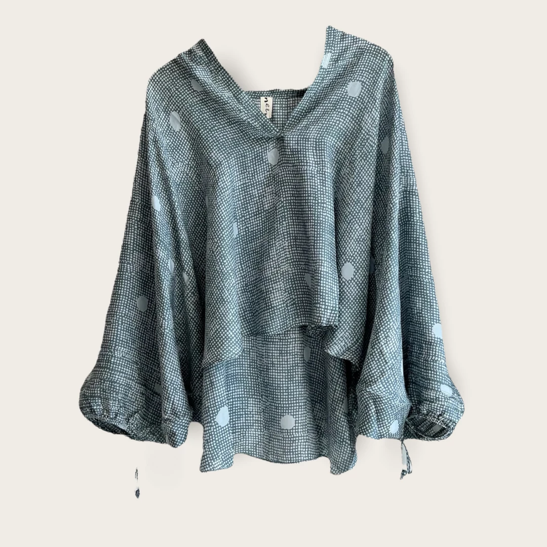 The Noah Silk Big Dot Haze by Neem is a gorgeous blouse you’ll find yourself living in. Soft to the touch and light weight, it’s a no brainer. Wear from work to drinks with ease.