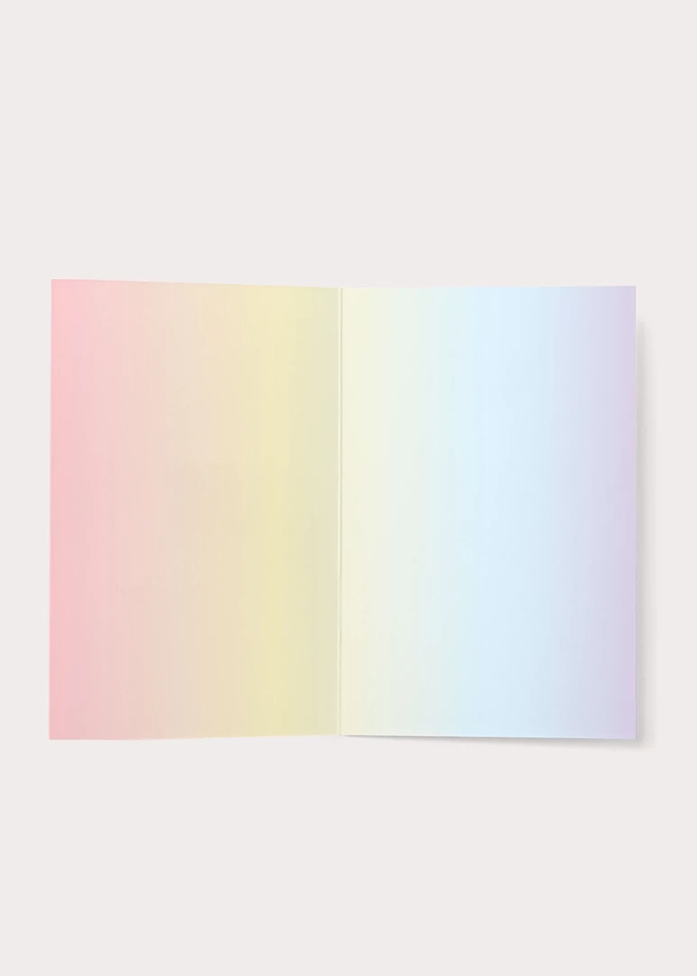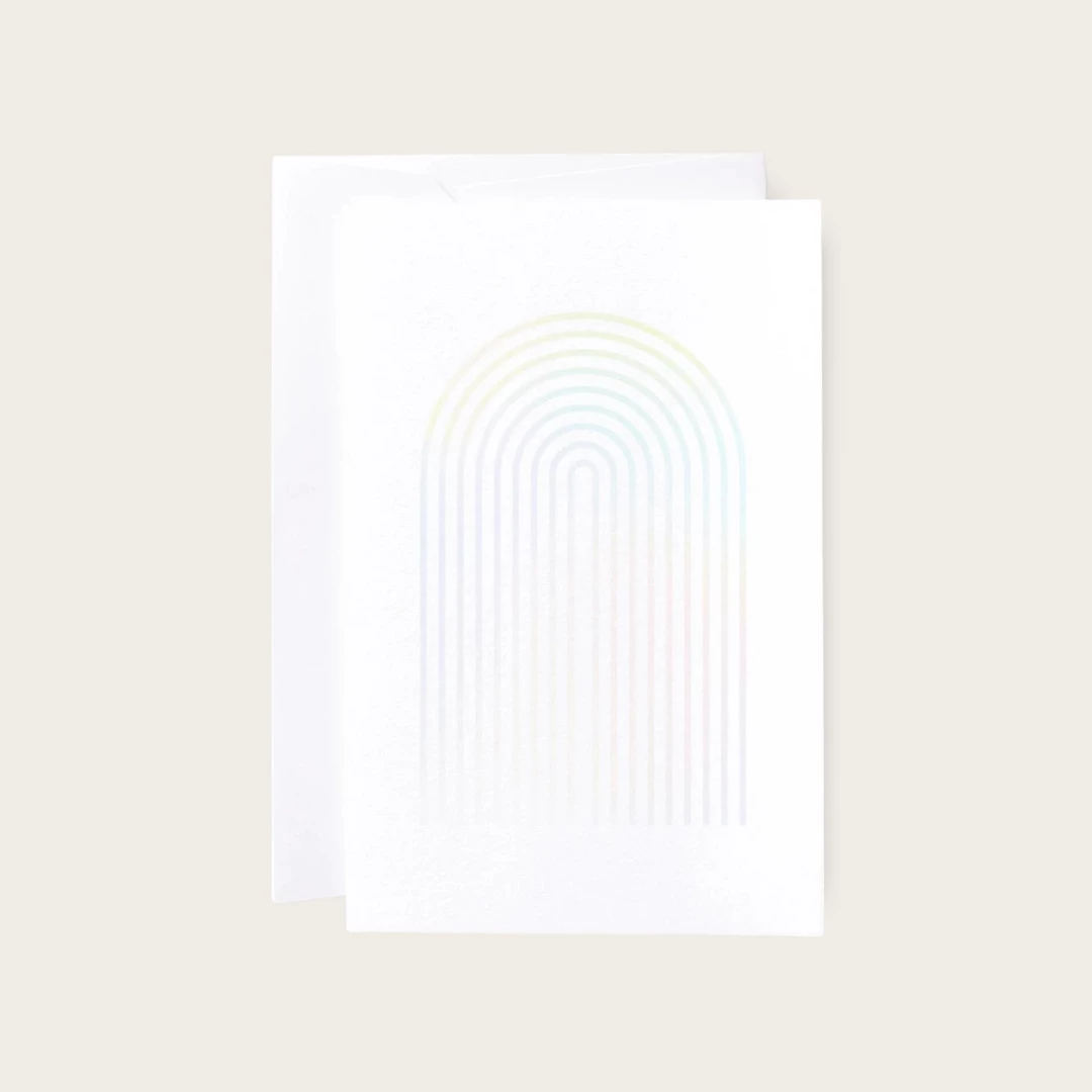 For the love of love. Iridescent foil stamped rainbow cover, letterpress printed by New England craftsmen, on post-consumer American vellum paper. Custom card size 4.75” x 7.25”. Signature Noat envelope. Limited edition.