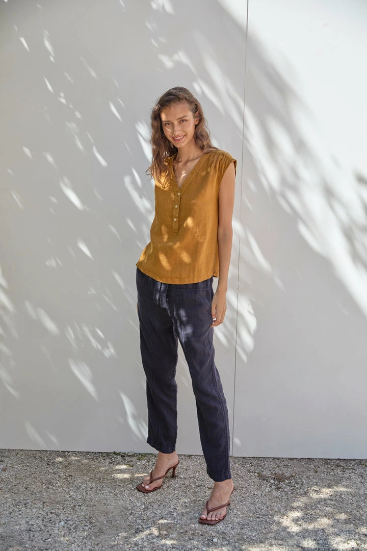 The breathable linen pants by Sita Murt offer everyday elegance. Wear as a set with our Linen Shell Top in Black or mix and match with our Linen Shell Top in Cocoa also by Sita Murt.Â