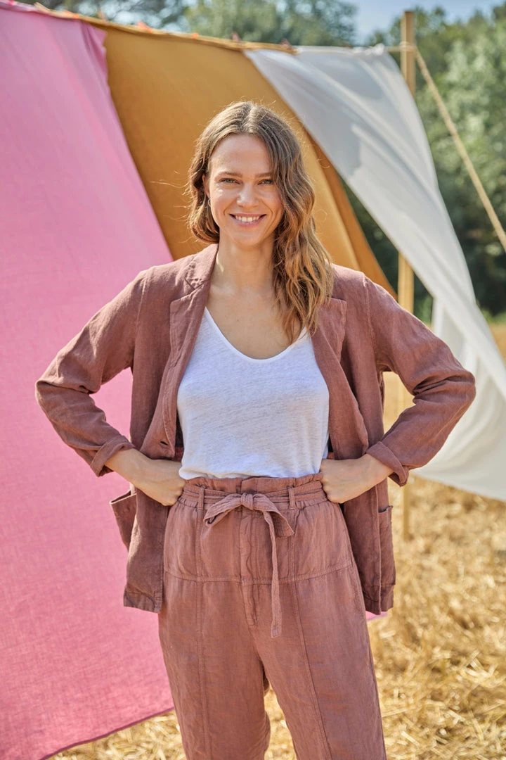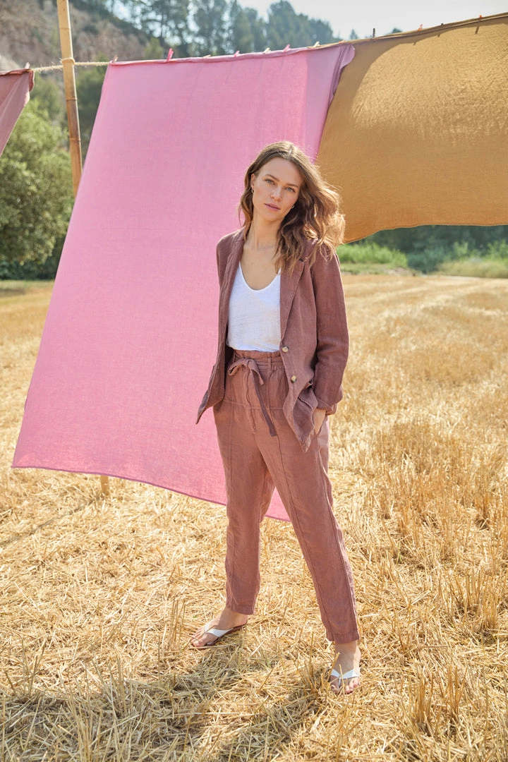 The breathable linen pants by Sita Murt offer everyday elegance. Wear as a set with our Linen Shell Top in Cocoa or mix and match with our Linen Shell Top in Black also by Sita Murt.Â