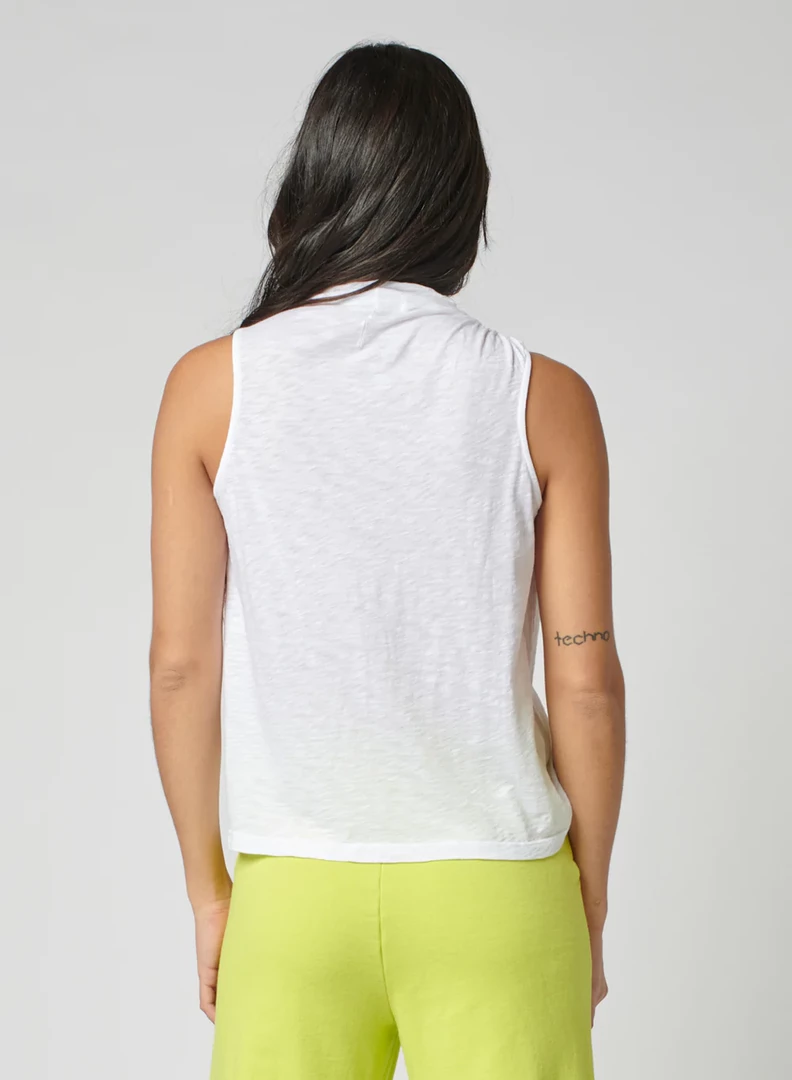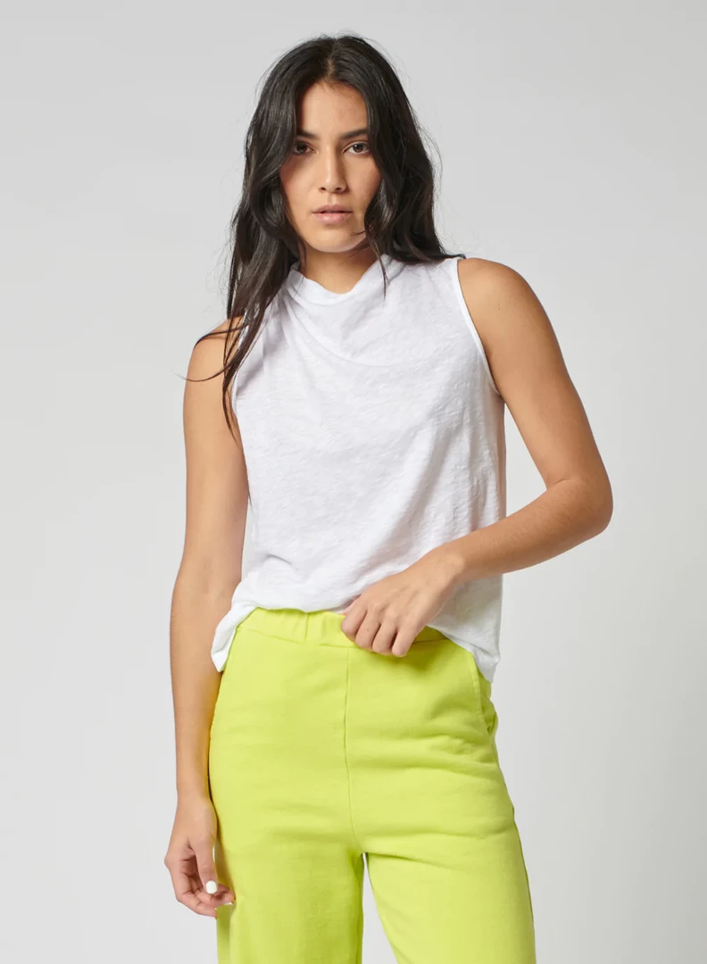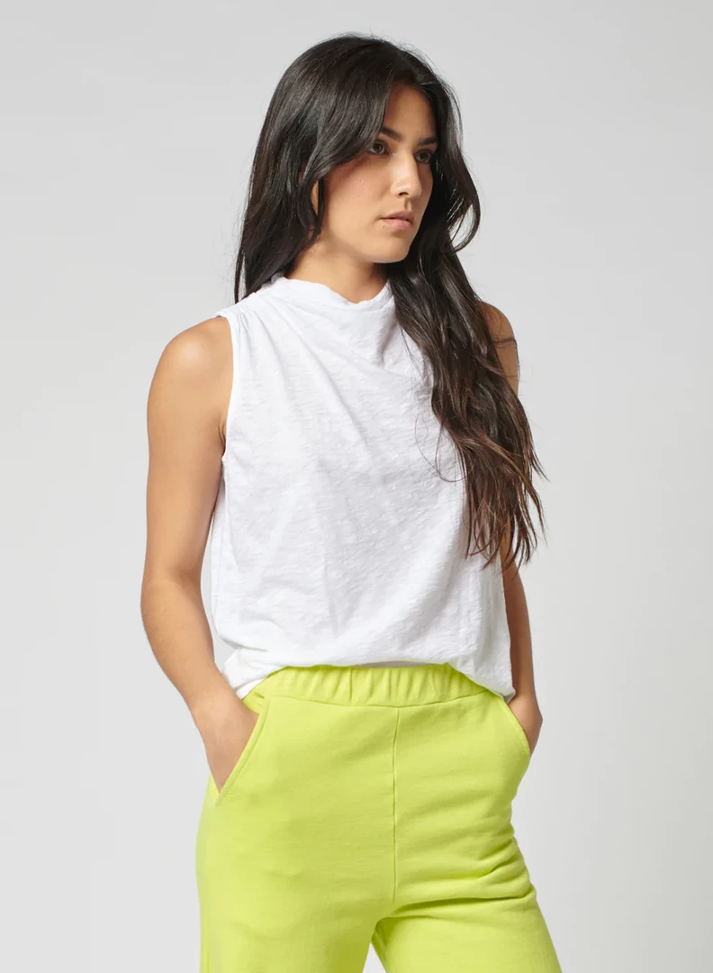 The Supima Slub Jersey Muscle Top adds just a touch of uniqueness to this season’s basics. Made with 100% Supima Cotton muscle style tee with a slight cowl neckline adds subtle variety to your closet staple. Find yourself living in this elegant top.