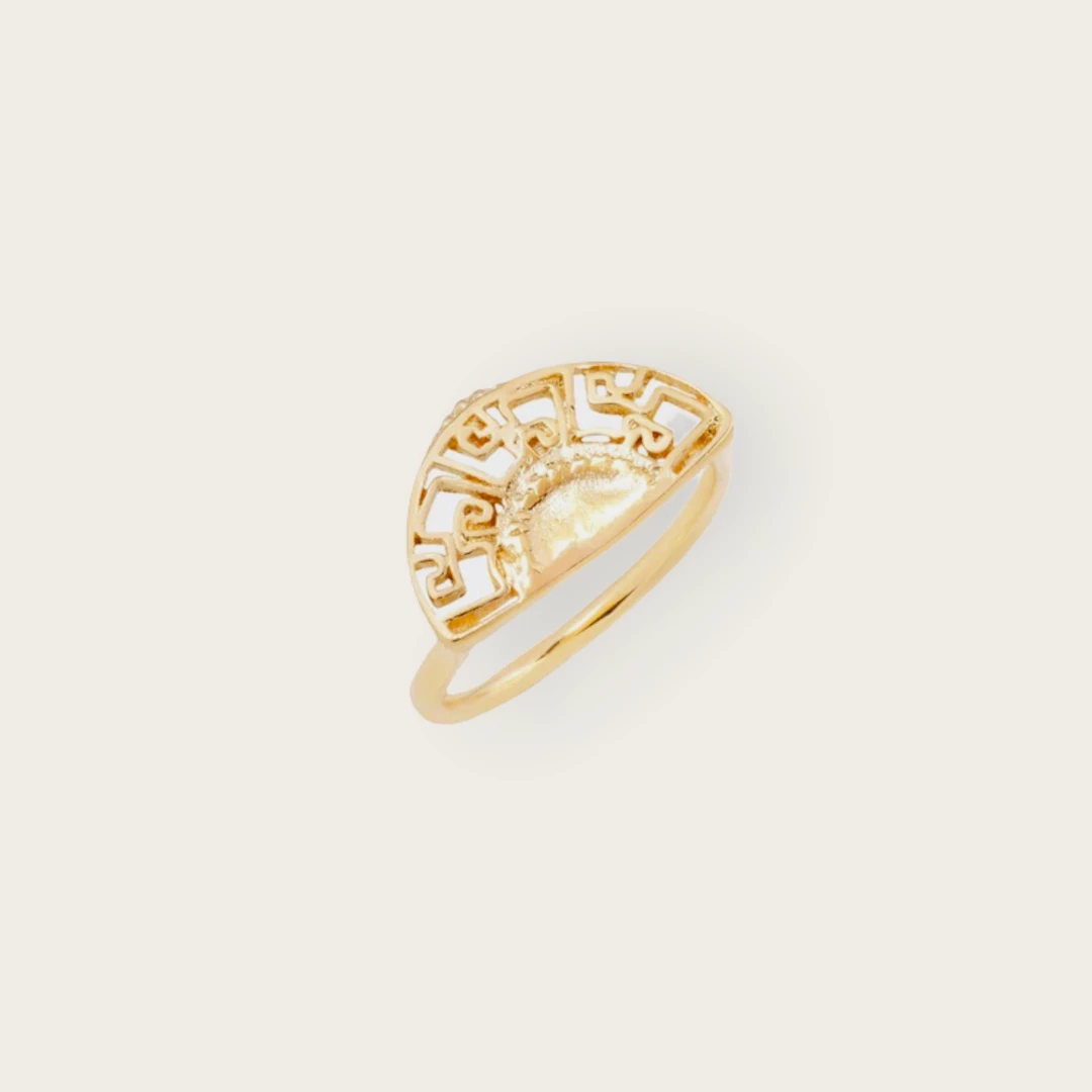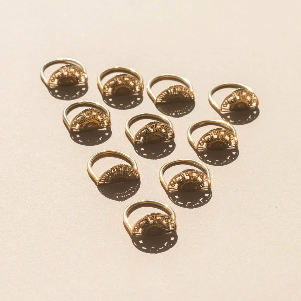This artfully crafted half circle or horizon sun ring is lovely on its own or stacks beautifully with other favorites for a layered look.